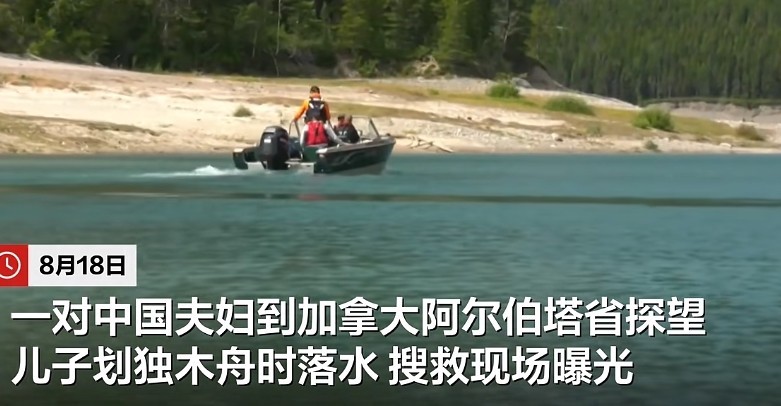8月18日,一对中国夫妇到加拿大阿尔伯塔省探望儿子划独木舟时落水,现场搜救视频曝光。